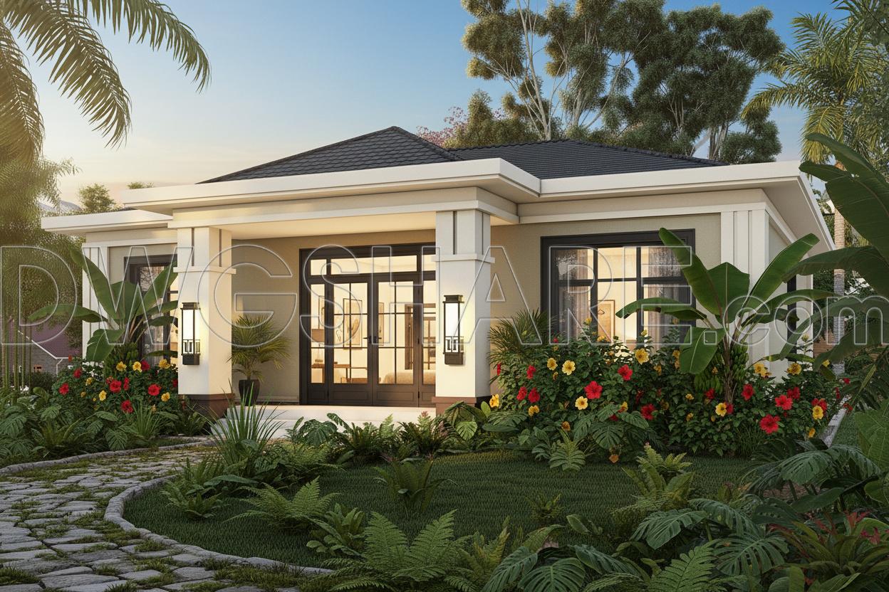 One highlight is the roof design. The sloped roof, with a moderate overhang, keeps the proportions balanced and suits tropical climates well. If built properly, it will improve drainage and reduce heat gain effectively.