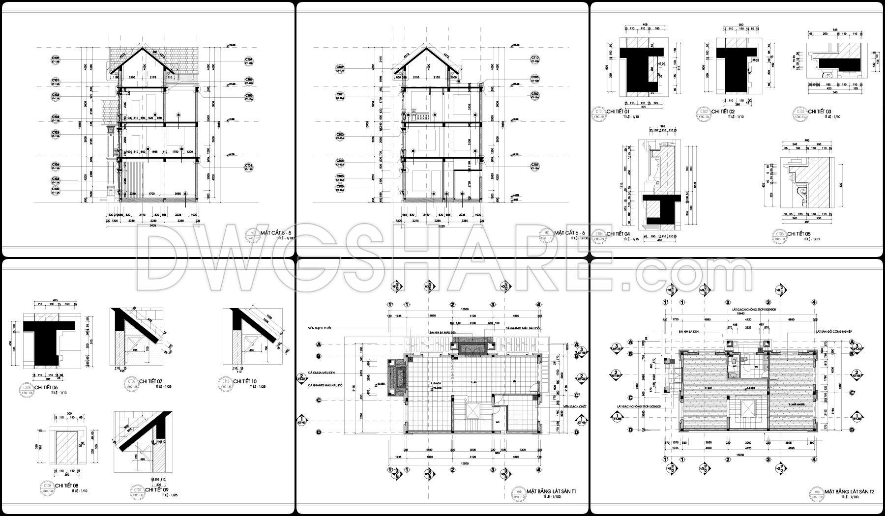 875. Free CAD Drawing of a 2-Storey Villa – Complete Architectural Plans