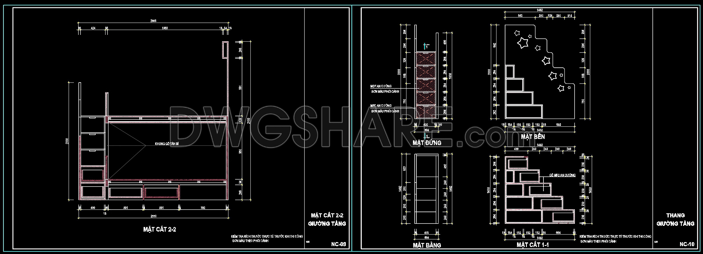 Explore the comprehensive CAD drawings of bunk beds for kids, offering an array of detailed views essential for architects and interior designers. These drawings include multiple views such as side elevations, front elevations, and sectional views, providing a complete perspective on every aspect of the bed’s design. Key dimensions include the overall height of 2500 mm and width of 2080 mm, ensuring precise measurements for your construction needs.