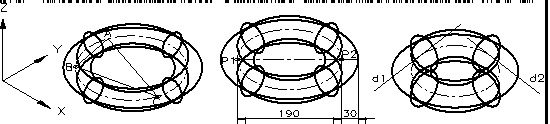 Specify second end point of diameter: @190,0 – Specify the second end point of diameter of the torus (P2).