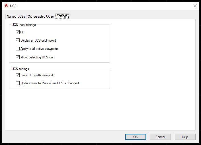 When you choose this tab, new page appears. Display and edit UCS icon settings and the settings are saved with the viewport.